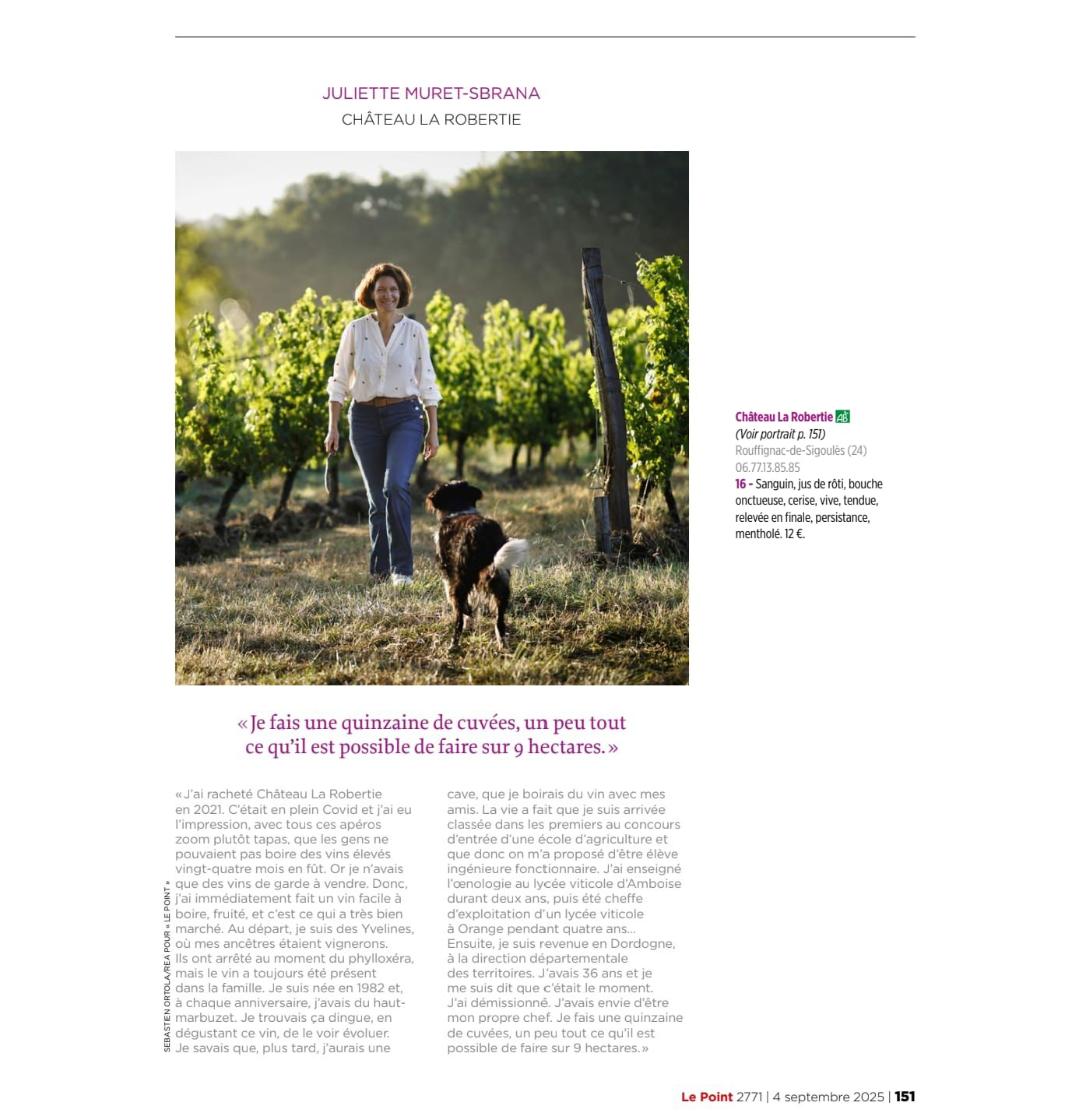 L’édition « Spécial Vins » du Point en septembre 2025 l’a noté 16/20.