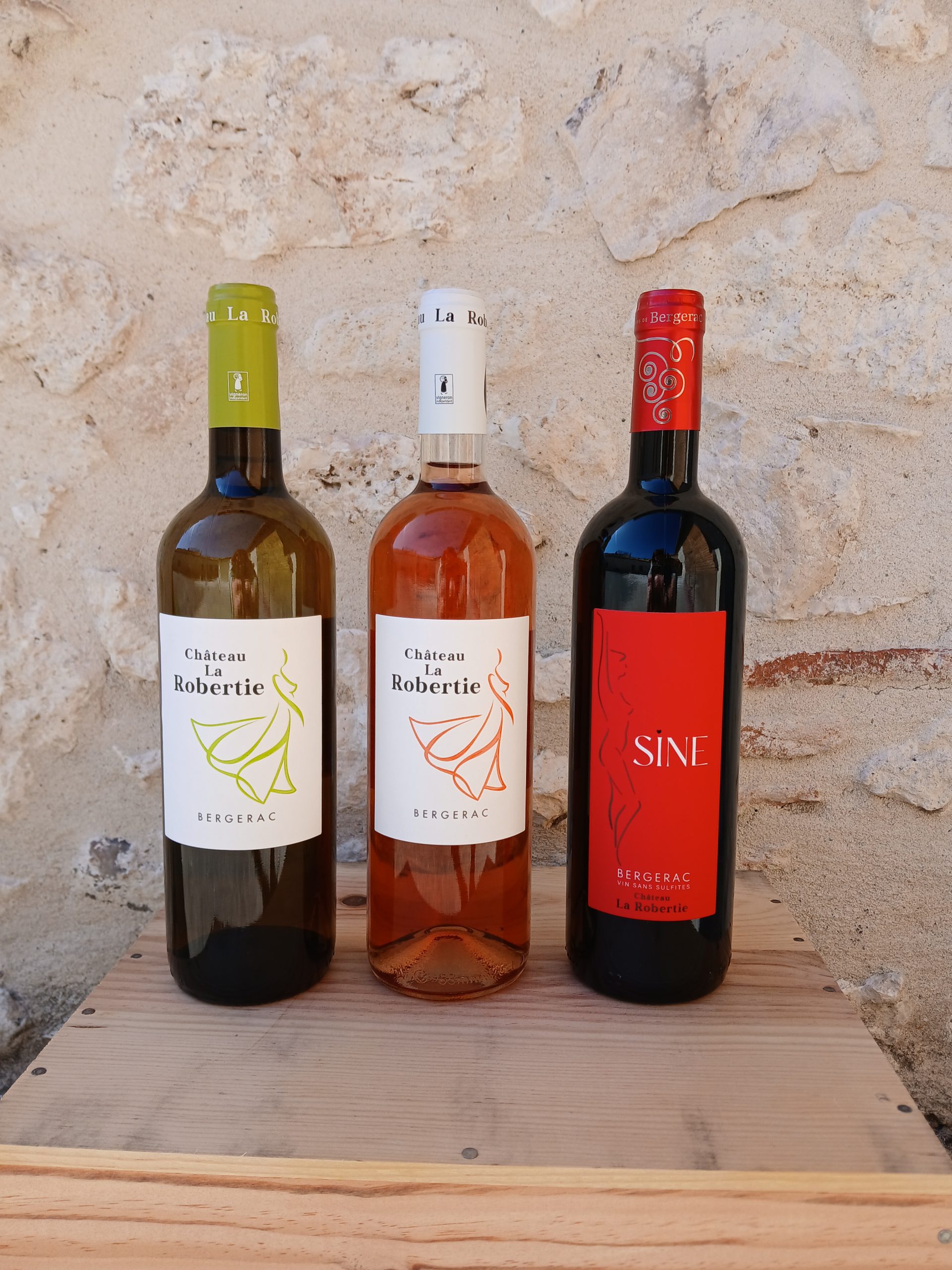 - 12 bouteilles de « Sine », le Bergerac rouge sans sulfites, très fruité et légèrement alcoolisé (12%vol), à déguster légèrement frais.